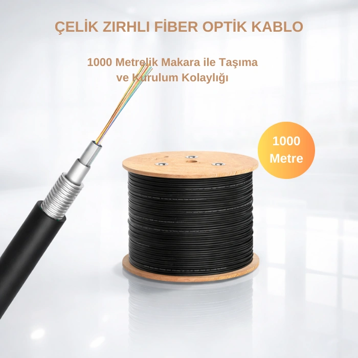 Neflan 8 Core OS2 Singlemode 9/125 Çelik Zırhlı Fiber Optik Kablo