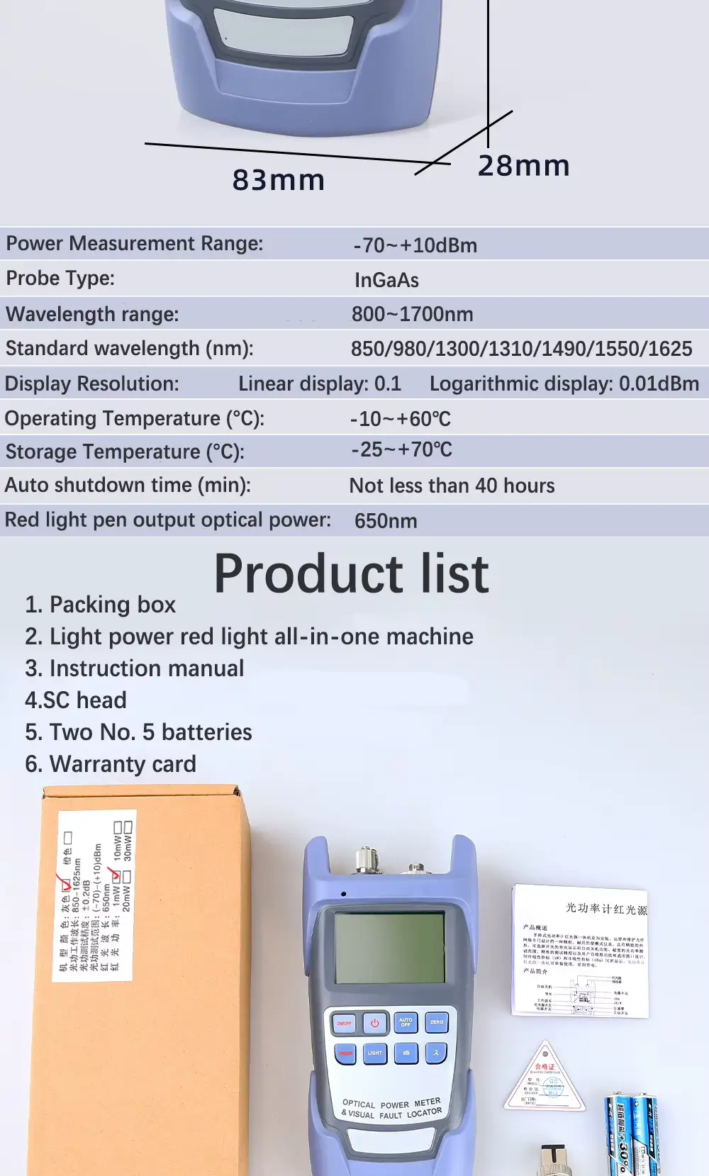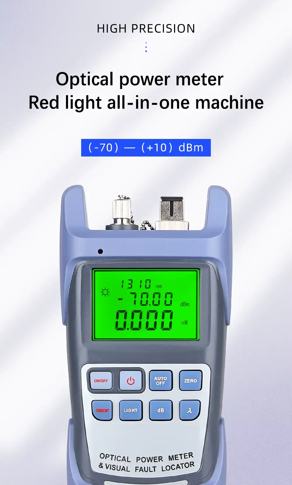 Fiber Optik Power Metre, fiber optik ağlarda optik sinyal gücünü ölçmek, bağlantı kayıplarını analiz etmek ve sistem performansını doğrulamak amacıyla kullanılan hassas bir ölçüm cihazıdır. Lazer ışık kaynağı ile uyumlu çalışarak FTTH, FTTx ve telekom altyapılarında güvenilir ölçümler sunar.